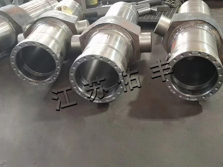 卡键加工成圆环形后,以120°剖切三等份。装配时先将缸盖放入缸筒内,可稍向里多推进一些,再分别将呈三等份的卡键置入缸筒的环形键槽内,然后将缸盖轻轻向外拉出直至靠全卡键下侧面为止。然后安装压环(或套环),并用螺栓紧固。